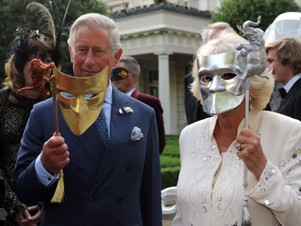 But the real stars of the evening were Prince Charles and the Duchess of Cornwall, who donned their finery - and animal masks! - for the evening out.