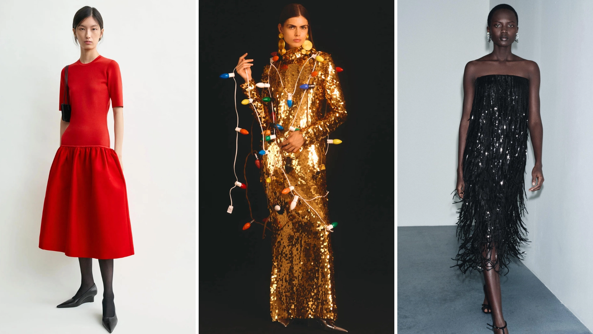As it's Christmas, the colour palette can be gloriously festive—your cranberry reds, your pine tree greens—or something equally sumptuous but slightly more subtle (full-fat cream or an inky midnight blue). Keep scrolling for the dresses we'd love to wear this Christmas.