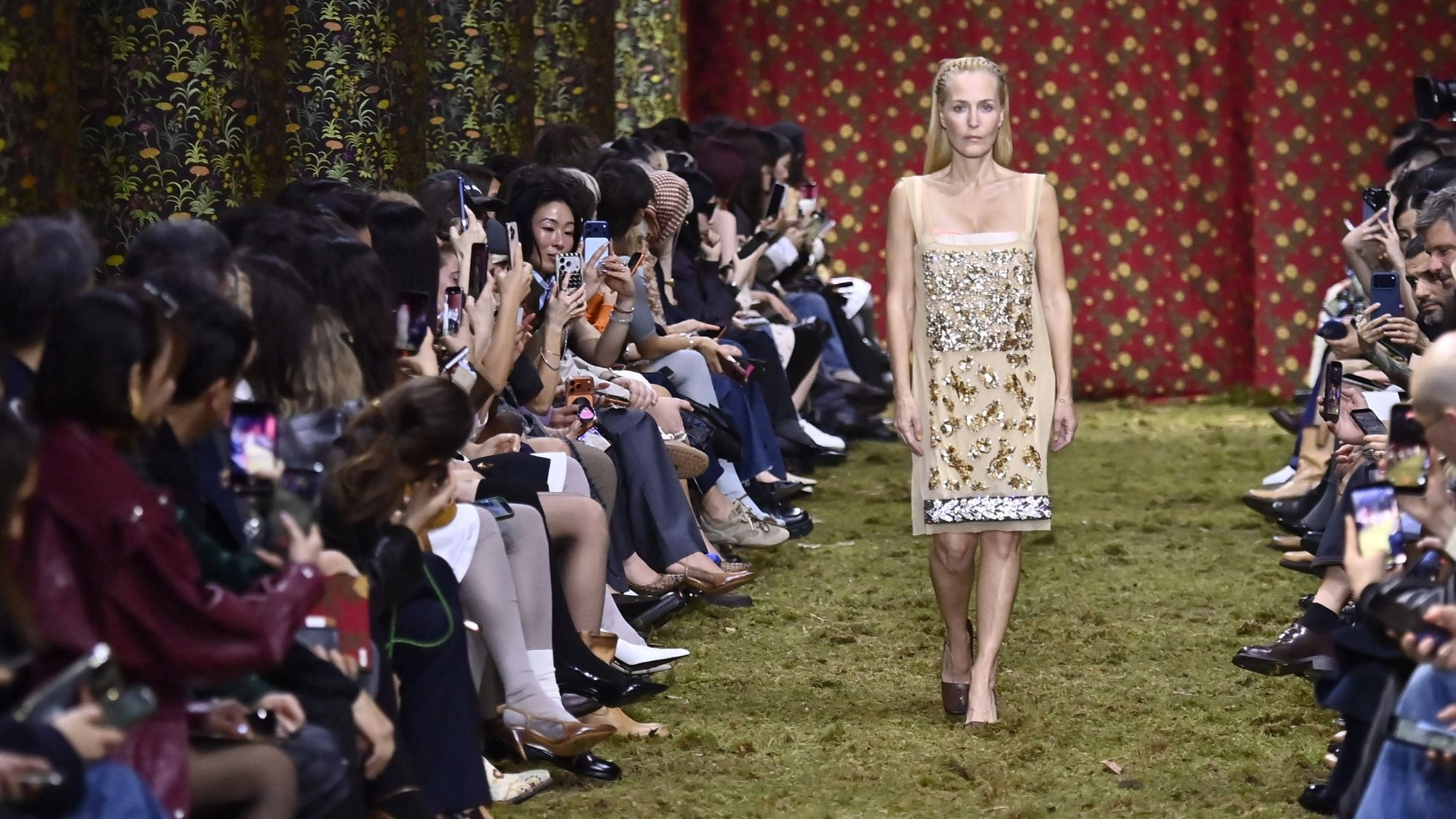 Chloë Sevigny, Kristen McMenamy, Yeonjun, Gemma Ward, and Gillian Anderson—the line-up of famous faces walking Miu Miu's Autumn/Winter runway was more than impressive enough to cement it as the unofficial finale of Paris Fashion Week. And that's not to mention the celebrity front row: Little Simz, Daisy Edgar-Jones, and Alexa Chung, included.