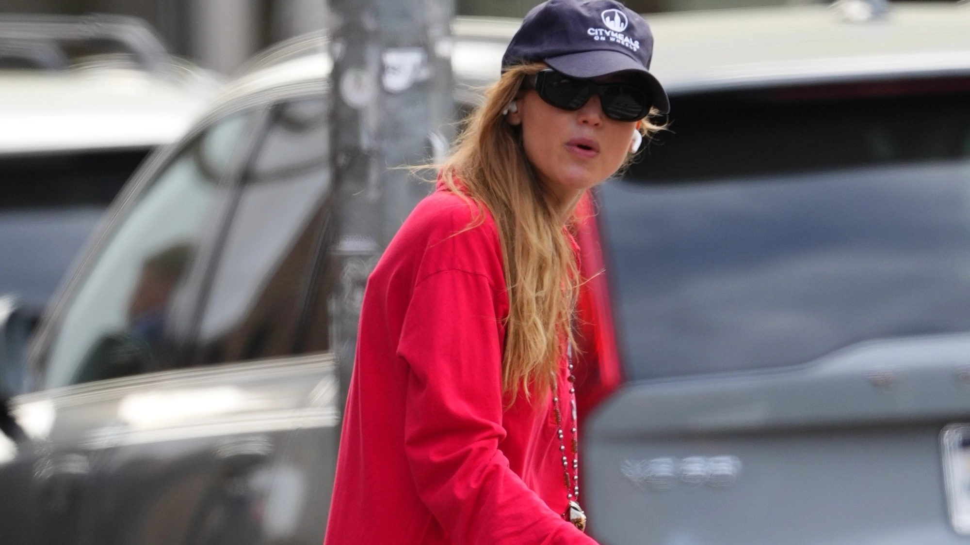 Usually involving a baseball cap, a string of beads and something from The Row (or several things), J. Law's latest outfit combined all three signatures for a look that was organised chaos—in a good way.