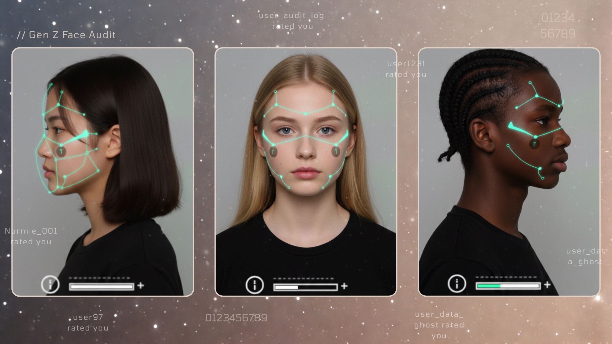 This narrowing of ideas was highlighted by each individual I spoke to. All took to the forums, in part, to reassure themselves that their appearance was societally acceptable, at the very least. But this rarely ends well and often opens an existential feedback loop that is difficult to close. "I felt like I lost myself in the process, but it did solidify that I looked presentable…" concludes Brownn. "But where’s the fun in that? Looksmaxxing made me look… Bland.”