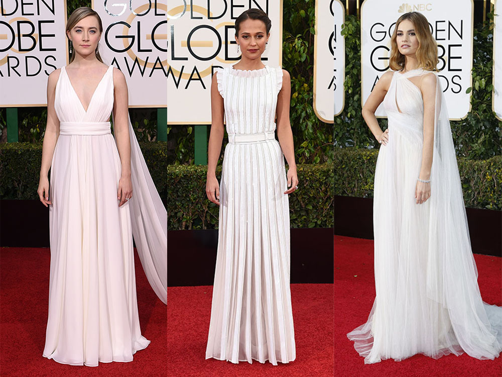 White Hot Fact; All the rising star actresses wore white. Three of our favourite looks of the night came courtesy of Alicia Vikander, Saoirse Ronan and Lily James, who each wore a totally not bridal, pure white gown. Saoirse and Lily both went with a maxi-take on that caped silhouette, while Alicia’s Louis Vuitton number was spliced to ribbons. Dreamy.